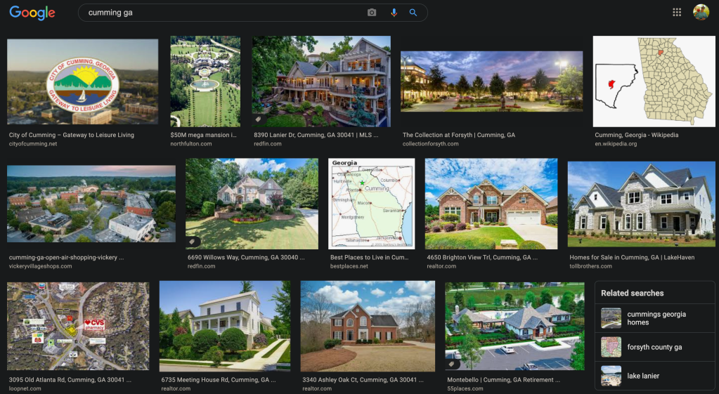 Cumming might as well be the Detroit of suburban Atlanta, in the sense that nobody really wants to stay there forever. The top 3 things to do in Cumming as listed by Google are – 1. Going hiking in the neighboring county. 2. Playing tennis, and 3. Going for a bike ride. Literally none of those are special and two of those I could do by playing Wii sports.